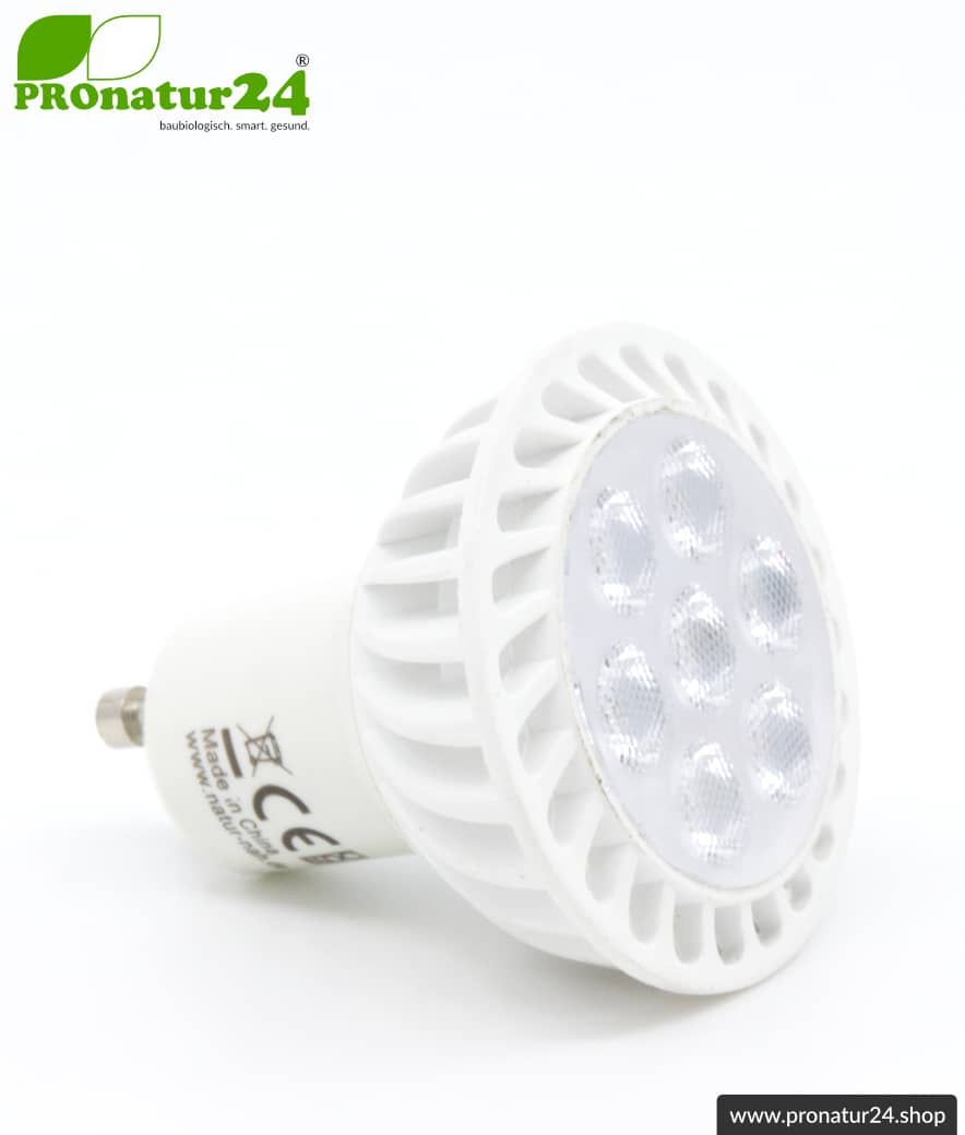 Sonnenlicht flimmert nicht dh. flimmerfrei bei 0 Hz (Hertz). Entwickelt nach dem Vorbild unserer Sonne ist auch dieser LED Spot maximal flimmerreduziert, sprich gesund flimmerfrei auch nach baubiologischen Richtlinien. Diese LED produziert 480 Lumen Lichtstrom bei einer Helligkeit von 35 Watt.