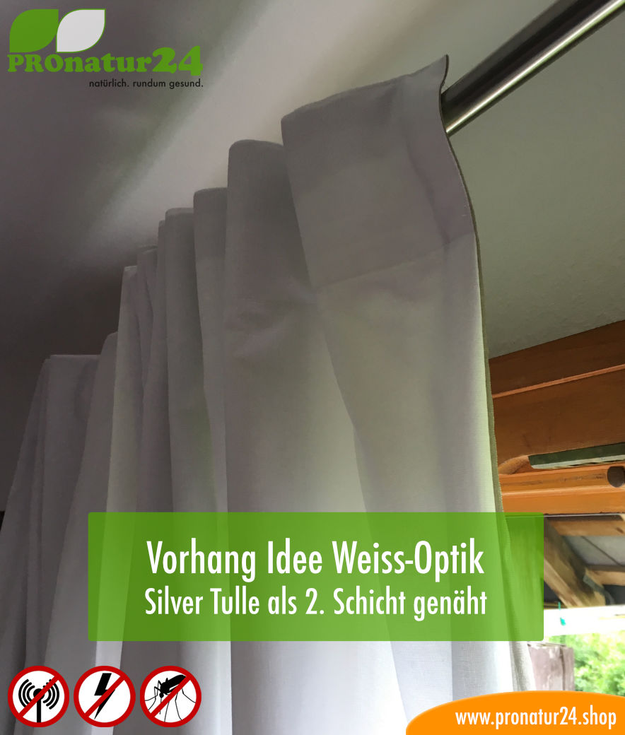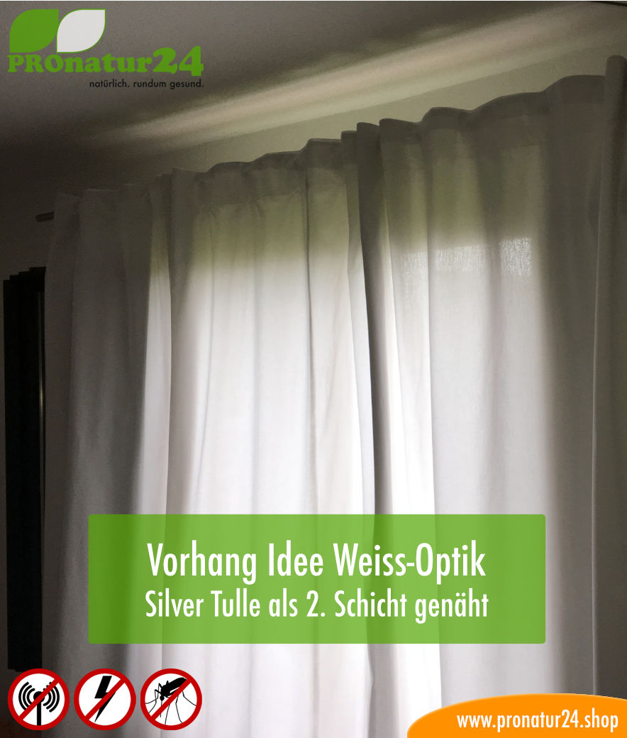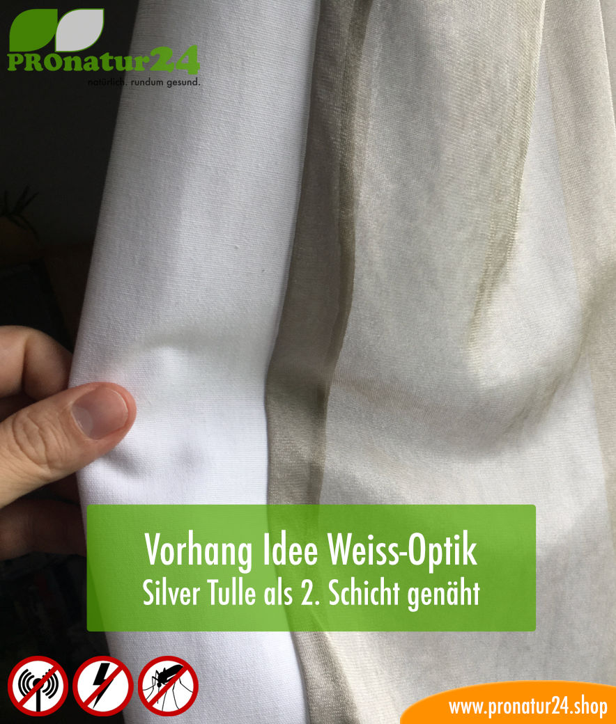Seit gut einem Jahr nutzen wir den Silver Tulle Abschirmstoff für unsere Baldachine Elektrosmog PRO. Nach verschiedenen Tests als Vorhang, empfehlen wir SILVER TULLE nun auch als hochwirksamen Abschirmstoff fürs Fenster. Falls die silberbeige Farbe stört, so kann der Abschirmstoff auch problemlos an einem zB blickdichten Vorhang “hinten” angenäht werden.