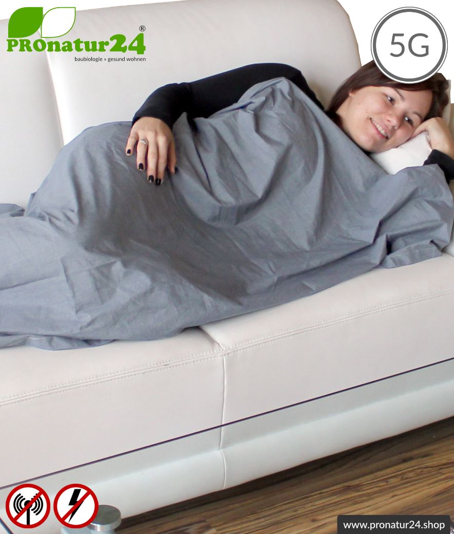 Egal ob der Körper von der Funkstrahlung lokaler WLAN-Installationen oder Smartphone des Nachbarn belastet wird oder von den elektrischen Feldern der Hausstromleitung in der Wand – diese abschirmende Decke kann hier hilfreich sein zur Reduktion der Belastung durch Elektrosmog – inklusive 5G. Produziert aus einem Stoffgewebe mit Edelstahlfäden ist diese Decke gedacht um sich auf der Couch, im Bett, auf Dienstreisen oder beim Konsole spielen einfach und schnell zu erden und zu schützen.