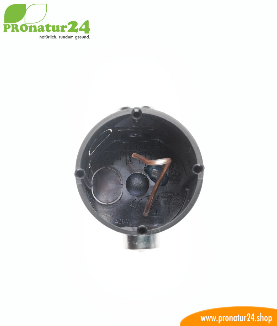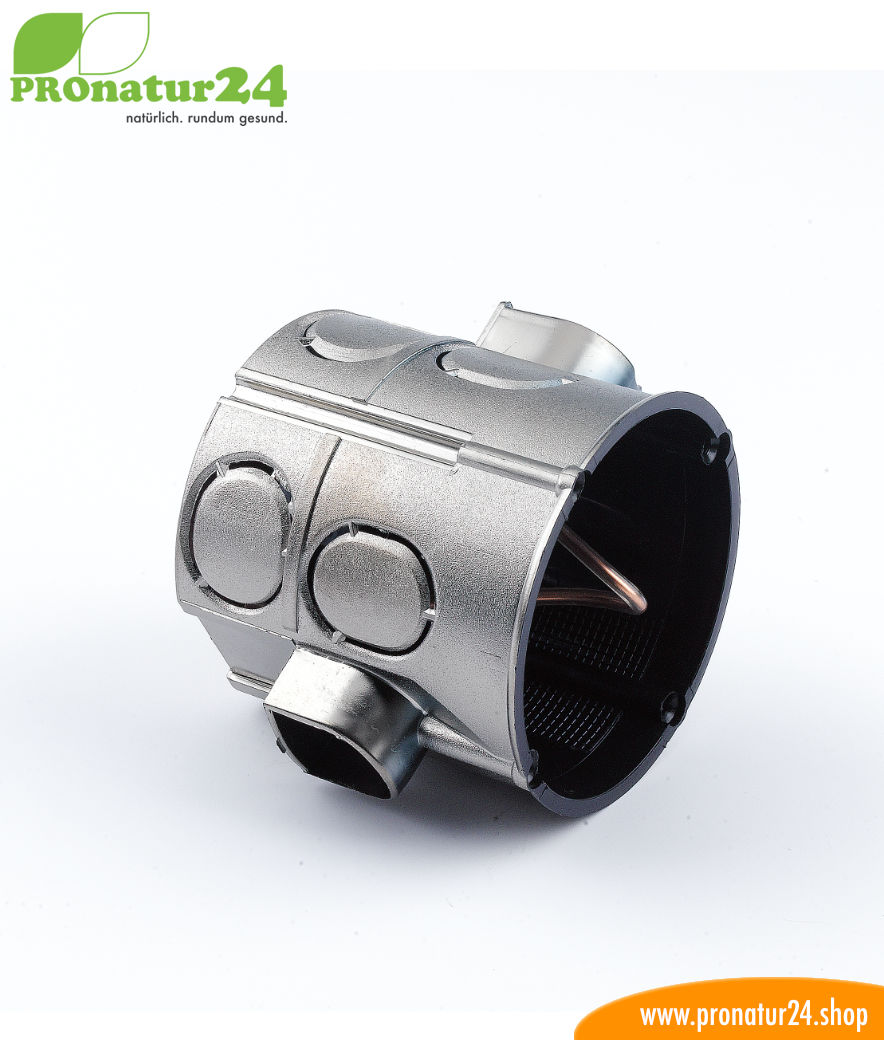 Geschirmte Unterputzdose, tief. Putz-Abzweig-Schalterdose mit 61 mm Tiefe zur Installation abgeschirmter Elektrokabel unter Putz. Ideal für den Elektrosmog NF abgeschirmten Raum nach Faraday zur Reduzierung elektrischer Felder.