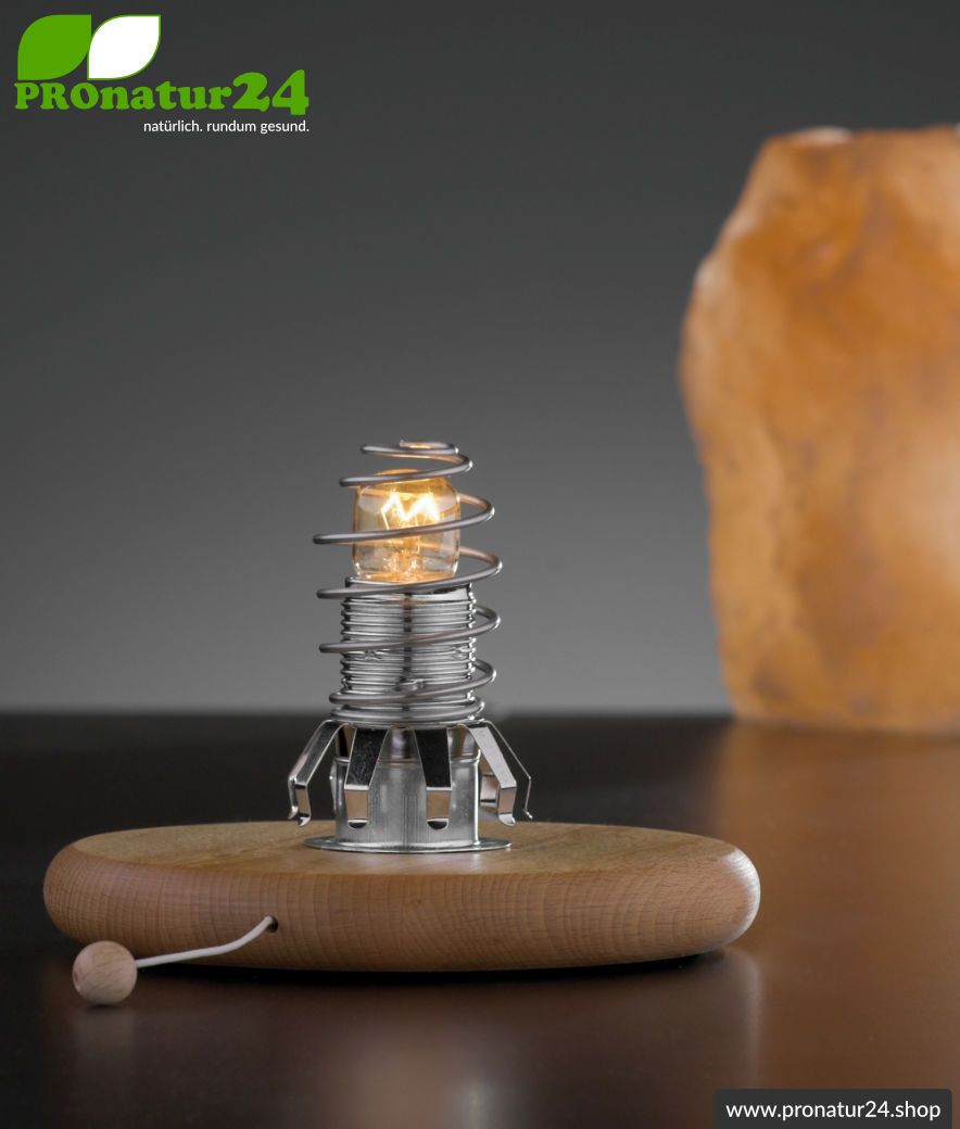 Bei der Salzkristalllampe empfehlen wir ein Leuchtmittel mit E14 Fassung mit maximal 15 Watt. Auch der Griff zur Halogenlampe mit G9 Fassung ist möglich. In diesem Fall ist der Adapter G9 auf E14 notwendig. Ein weiteres Detail ist das hohe elektrische Wechselfeld bei handelsüblichen Salzkristall Lampen.