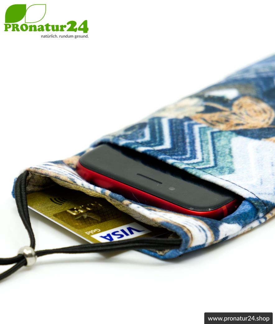 HANDYHÜLLE / HANDYTASCHE FELIX.BLAU MIT EMF ABSCHIRMUNG. STRAHLENSCHUTZ VOR ELEKTROSMOG VOM EIGENEN SMARTPHONE. SCHUTZWIRKUNG AUCH BEI 5G.