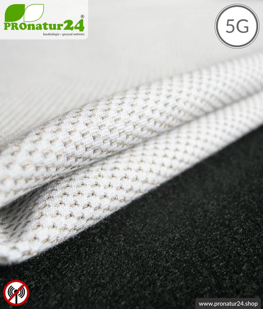 NEW ANTIWAVE Abschirmstoff gegen Elektrosmog durch Funkstrahlung (Mobilfunk, WLAN, DECT, …). Bis 33 dB Schirmdämpfung HF. Sehr angenehm zu tragen auf der Haut und daher ideal für Kleidung. Waschbar, bügelbar, nähbar. Pflegeleicht. 5G ready!