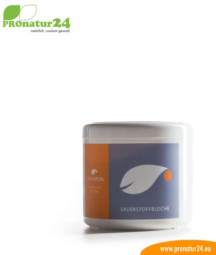 UNI SAPON Sauerstoffbleiche. Die ideale Ergänzung zum Waschkonzentrat. Die Uni Sapon Sauerstoffbleiche besteht aus Soda und reinem Natriumpercarbonat, welches beim Waschvorgang zu Wasser, Soda und Aktivsauerstoff zerfällt.