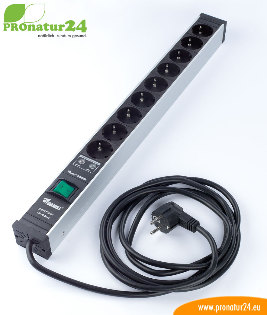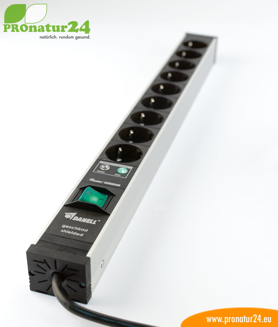 9 Schukoeinsätze geschaltet. Hohe Schirmung gegen elektrisches Wechselfeld bei Netzspannung.