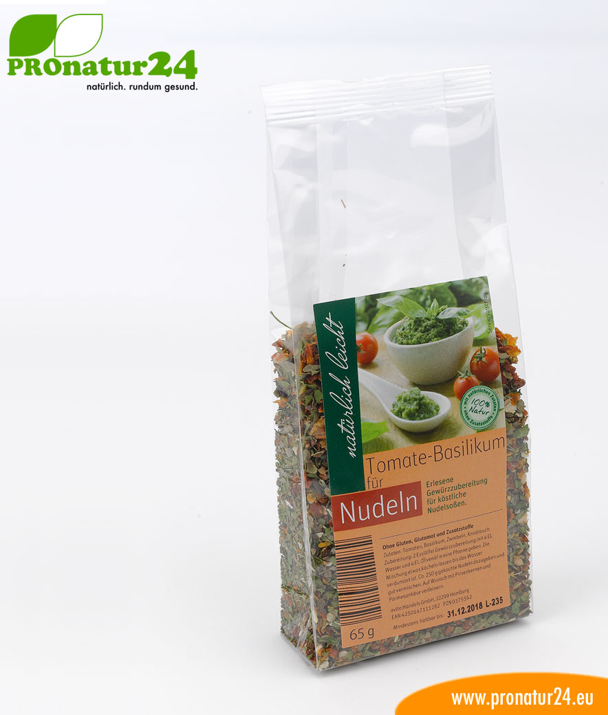 Mit dieser Kräutermischung aus Tomate und Basilikum liegen Sie einfach IMMER richtig. Egal ob für die schnelle Küche oder als Begleitgang zu einem leckeren Menü, Sie werden begeistert sein. Mit dieser Kräutermischung wird die gewünschte Tomaten-Basilikum Nudelsoße in jedem Fall gelingen, denn die Zubereitung ist definitiv einfach.