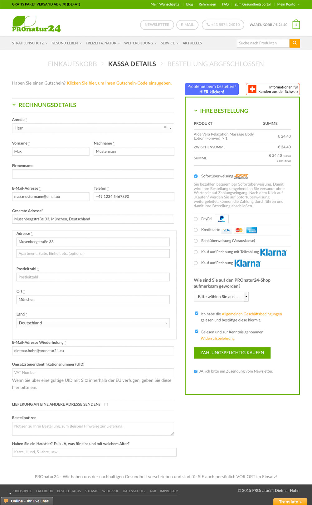 Unsere Hotline für alle Fälle +43 5574 24010 (Mo-Fr von 18-21 Uhr, Sa 10-16 Uhr) oder schreiben Sie uns einfach an “info (at) pronatur24.eu” oder nutzen Sie den Live-Chat hier links unten.
